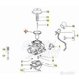 (R.22895) Vendo membrana del carburatore nuova per Piaggio Fly 125 e 150 dal 2005 - Liberty Sport Delivery TNT Single Nexive Moc RST PTT 125 , 150 e 200 dal 2004 - Vespa Granturismo 125 dal 2003 - Vespa LX LXV 125 e 150 dal 2005 - Vespa S 125 e 150 dal 2007 - X8 Street 125 e 150 dal 2006 simile a codice Piaggio CM140302 , Aprilia Mojito 125 dal 2003 - Sport City One 125 dal 2008 - SR Motard 125 dal 2012 simile a codice Aprilia AP8540170 , per applicazioni e spaccato vedere foto