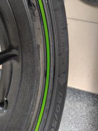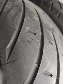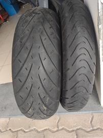 dalle foto si vede lo spessore del battistrada rispetto alle tacche di controllo e le condizioni generali. non ricordo i km percorsi, le sostituisco x cambio genere