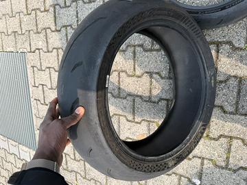 Vendo Michelin Power GP 2 •Anteriore: 120/70 ZR17 •Posteriore: 200/55 ZR17 Il posteriore presenta un piccolo foro nella parte centrale del battistrada, causato da un chiodino molto sottile, come si vede in foto. Per sicurezza l’ho sostituito, ma la gomma è rimasta una settimana in box senza perdere pressione, quindi il foro è davvero minimo. Le gomme hanno solo 1000 km, quindi sono ancora in ottime condizioni.