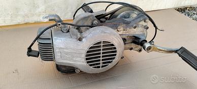 Blocco motore completo Minarelli 50cc V2 originale. È stato smontato funzionante qualche anno fa e poi tenuto fermo quindi è da controllare. I PEDALI NON SONO DISPONIBILI Monta su tuboni storici come Malaguti cimatti italjet fantic motor ecc.. possibilità di spedizione anche con pagamento alla consegna Tel. 345/1270874