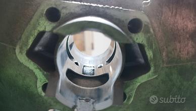 minarelli k6 corsa 39 perfetto non ha una ammaccata e' perfetto con 50 gilardoni 40.3 pistone nuovo sempre corsa corta do un altro cilindro con pacco lamellare sempre gilardoni e 19 di carburatore il blocco motore e' stato rifatto da faccioli campana dal pieno denti dritti alberi calettati biella temprata