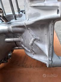 Vendo motore Minarelli verticale per Booster 50 con cuscinetti di banco e paraoli nuovi. Motore con carter sabbiati in ottime condizioni no crepe o rotture. Visibile in foto riparazione mediante saldatura da professionista del settore. Motore completo di trasmissione e rapporti originali da completare a seconda delle proprie esigenze. completo di copri carter. Prezzo 280 euro.