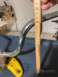 Vendo per fare spazio manubrio modificato per minibike benelli tre o quattro marce. Era stato montato da un camperista che lo teneva d’inverno dentro il piccolo camper. Si vende come in foto con base originale benelli, opportunamente modificata. Può essere utile a chi ha problemi di spazio, fermo restando che potrà conservare quello originale. Come si vede nella foto è circa 8 cm più basso di quello originale. Viene venduto con la formula visto e piaciuto. Basta solo una pulita e si può montare. Prezzo irrisorio e spedizione a carico dell’acquirente.