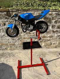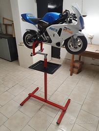 Vendo cavalletto universale per minimoto di colore rosso,tutto smontabile in 2 minuti come vedrete dalle foto,è compreso dei pomoli,tappi e viteria varia,à un vassoio porta cacciaviti regolabile in altezza, li vendo dà anni a meccanici,privati per ripararsele fare manutenzione anche quando vanno correre in pista,sotto il cavalletto è provvisto di 4 piedini regolabili volendo basta svitarli e inserire 4 ruote così potete spingerlo senza dover alzarlo per spostarlo... Se volete ò il modello girevole una volta messa sù la moto potete girarla però viene 15 euro in più... È MOLTO ROBUSTO e essere usato tranquillamente con minimoto DM, GRC, BLATA,M2, STAMAS, , PASINI, SG.ecc .. Scrivetemi pure vi risponderò wazap 3333356152 michele...