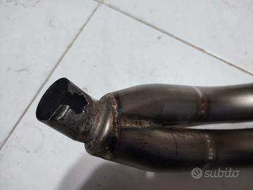 Vendo scarico MIVV Double Gun, dal design sportivo e compatto, ideale per migliorare estetica e sound della moto. Lieve difetto come mostrato in foto. Acquistato per Hornet, ma arrivato di modello sbagliato, la tenuta non corrisponde. Se volete montarlo su Hornet bisogna fare qualche modifica.