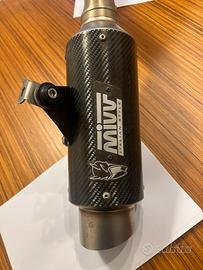 Scarico Micv gp Pro completo in carbonio ( terminale e collettore) omologato per la circolazione stradale per honda cb125r con tanto di tessera che certifica l’ omologazione. Lo scarico é perfetto e funzionante presenza solo qualche graffietto e imperfezione sul terminale nella parte vicino alle viti ( visibile in foto) ma quasi inesistente. Utilizzato per appena 5000km.