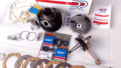 -1) Gruppo termico DR Racing di cilindrata 130 composto da cilindro a 6 travasi in ghisa diametro 57mm + pistone a doppia fascia + testata in alluminio.