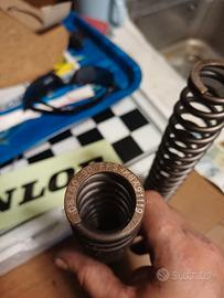 molle forcella ohlins per yamaha R6 yzf MODEL YEARS2008 , 2009 , 2010 , 2011 , 2012 , 2013 , 2014 , 2015 9 N/mm lunghezza 255 richiedono olio ohlins 01309 praticamente nuove causa vendita moto Molle forcella anteriore Road & Track 08760-90 Lo scambio delle molle della forcella anteriore è uno dei modi più convenienti per migliorare la forcella anteriore della moto. Insieme all'olio di alta qualità appositamente sviluppato di Öhlins, è possibile ottenere un notevole miglioramento della reattività e delle prestazioni di una forcella originale. Öhlins offre una vasta gamma di molle lineari per adattarsi a ogni singolo tipo di bicicletta, peso del ciclista e preferenze personali per l'installazione nella forcella anteriore standard. Materiale ben scelto e produzione di fascia alta garantiscono meno la differenza dell'1,5% per quanto riguarda la velocità della molla. Per veicoli Yamaha YZF-R6 (2008-2015) Codice componente 08.760-90 Codice del Tipo Molle forcella anteriore Scheda tecnica Lunghezza:255 mm Tasso N / mm:9,0 N / mm Posizione:anteriore Olio consigliato01309 Livello dell'olio103 confezione:coppia Note Il livello dell'olio viene misurato con la forcella anteriore completamente compressa, senza molla e tubo di precarico.