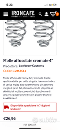 Vendo molle sella "heavy duty" a barilotto di ottima qualità e mai utilizzate per errato acquisto. Sono state acquistate su Iron Café come si può vedere dalla fattura in foto. Dopo averle montate mi sono reso conto dell'incompatibilità. Allego anche la fotografia delle molle a catalogo Iron Café. Prezzo escluso di spedizione da quantificare successivamente.