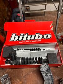 coppia marmitte, collettori scarico piu paracalore, contachilometri, tappo serbatoio con indicatore carburante, tappo serbatoio originale, ammortizzatori post., freccie ant, freccie post con supporto e luce targa, parafanghi anteriore e posteriore verniciati giallo metallizzato, leva cambio, parabrezza anteriore con attacchi, albero a camme ed ingranaggi. etc etc