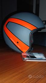 Casco jet in fibre composite, dispone di visierino parasole integrato e interni completamente removibili e lavabili.