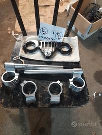 mono ohlins aprilia rs 125 2t nuovo più kit piastra melotti racing cnc completa di Semimanubri regolabili più 2 coppie di braccialetti forcella..uno rialzato e uno sottopiastra