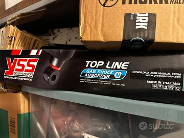 Vendo mono YSS topline regolabile per Honda crf 300 l e rally dal 2021 in poi. Il mono e’ da revisionare per una piccola perdita di olio ma funzionante.