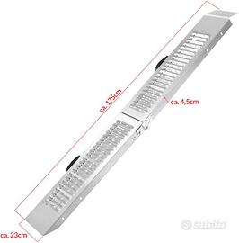 DATI TECNICI: misure da aperta con supporto alla base (HxLxP): 171x23x4,5cm // misure da aperta senza supporto alla base (HxLxP): 160x23x4,5 cm // materiale: acciaio zincato inossidabile // carico max. (per rampa): 200 kg // fornitura: 2x rampe di carico pieghevoli