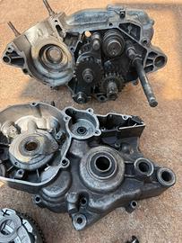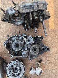 Albero motore, carter pompa acqua, motorino avviamento, accensione, cilindro e pistone, probabilmente qualche leva del selettore cambio.