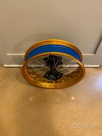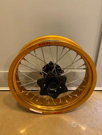 Vendo bellissimo appena montato nuovo, Ruota Cerchio da Motard 17 pollici Posteriore Misura 17x 4,25 con mozzo honda veniciato a polvere , canale nuovo Exel color oro , raggi cromati nuovi Compreso fornisco i cuscinetti e i parapolvere nuovi Altezza h 9 mm Diam Interno 25 mm Diam Esterno 42 mm Dimensione perno ruota diametro 25 mm Il Montaggio e' possibile sotto qualsiasi moto Prezzo Euro 440 ATTENZIONE : Non viene accettata in nessun caso la PROPOSTA di ACQUISTO quindi non inviatele nemmeno . Grazie No perdi tempo scrivere solo se veramente interessati!!!