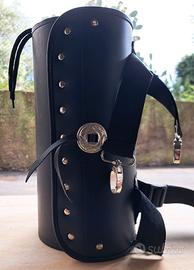 Moto Tool Roll Custom Tool Bag in nero Realizzato in ecopelle Rivestimento idrorepellente Con cinghie di fissaggio per telaio e forcella Misura (LxØ): 33x17 cm Va bene per un portapacchi o per sissy bar. Troppo grande per le forcelle anteriori.