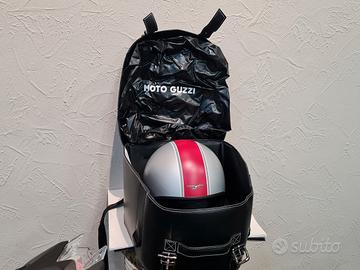 Bauletto posteriore in pelle nero con taglio classico, con capacita 30 lt, può essere montato al posto del sellino passeggero oppure sul portapacchi. Dotato di telo cerato parapioggia.