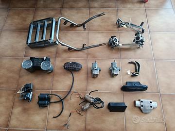 forcella V50 euro 130 , forcella V75 da 35 mm. euro 160 , serbatoio V50 da verniciare con chiave originale euro 80, coppia marmitte inox non omologate montano su tutta la serie piccola euro 80, coppia collettori scarico doppia camera senza ruggine euro 80, compensatore scarico per Nevada con sonda lambda euro 45 , raro alternatore Saprisa euro 120 , alternatore Bosch euro 150 , strumenti sciolti per cruscotto euro 40 l' uno, parafango anteriore V50 euro 30 , dischi freno da euro 25 , cardano euro 90 , forcelloni varie misure euro 25 , alberi trasmissione euro 70, coppie comandi a pedale euro 35 anche piccole per V 50 Monza , coppia carburatori da 26 euro 125, coppia bobine Nippondenso euro 50, più moltissimi altri ricambi