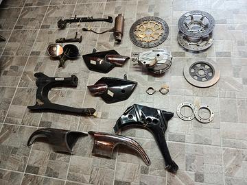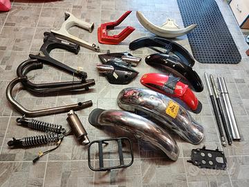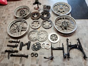 forcelloni varie misure euro 20, forcelle V50 da 32 mm.euro 135 , forcelle V65 da 35 mm. euro 165, piastre a diodi euro 30 , alternatore Saprisa euro 125, alternatore Bosch euro 150 , coppie bobine Nippondenso euro 50, cruscotto completo Lario 650 euro 180 , cruscotto Nevada 750 prima serie euro 125( plastica scheggiata inferiormente vicino attacco manubrio) , coppia ruote V 50 euro 60 , coppia ruote V35 custom euro 50 , pinze freno Brembo euro 35 , pinze freno Grimeca euro 15, cambio V 35 euro 130 , cardano da euro 80,:ecc. più molti altri ricambi.