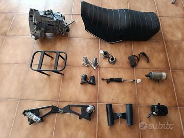 cambio V35 euro 140 , sella V50/65 custom senza strappi condizioni ottime euro 75 , coppia bobine Nippondenso euro 50, forcella V 50 da 42 mm. da revisionare euro 140 Altra uguale con punti di ruggine di canne cromate euro 90 , forcella V 75 da 35 mm. euro 165, piastre a diodi euro 45, regolatori di tensione euro 25, piattelli puntine accensione euro 45 , coppie pedane euro 15 , coppia pedane Nevada 750 euro 35 , ecc.