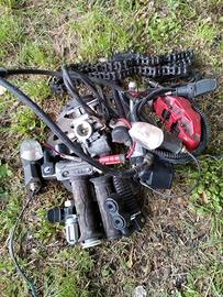 motore benelli piu ruota posteriore completa e vari pezzi come carburatore catena freccie pedajine pinza freni e vari pezzi smontati tutti per moto benelli solo ritiro a mano