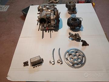 motore completo con cilindro rettificato, pistone nuovo Asso, carburatore, regolatore teleruttore, calotta ruote, corona, leve , vari pezzi.