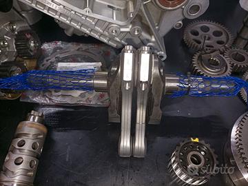 Albero motore, bielle, cuscinetti, bronzine, guarnizioni, ruota libera, cinghie, tutto nuovo.