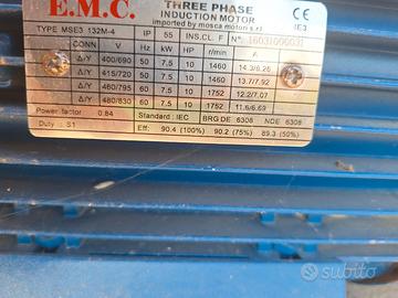Vendo motore trifase da 10 cv causa inutilizzo, è pari al nuovo è stato utilizzato poche ore perché poi ho cambiato essiccatoio e su quello nuovo non riesco ad utilizzarlo