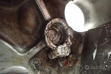 Visibili segni di saldatura sul lato sinistro all’interno, nella zona della boccola del motorino di avviamento.