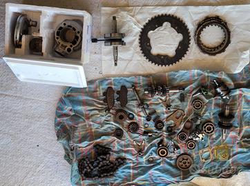 Vendo componenti di motore originariamente montato su una aprilia RX 50 del 1993. Il gruppo termico è un 70cc, funzionante probabilmente con cuscinetti da sostituire. Completo di ingranaggi e cambio 5 marce. i pezzi sono quelli che si vedono nelle foto. vendo in blocco, ho scritto "danneggiato" perchè non credo che sia tutto riutilizzabile, ma la maggior parte si.