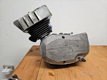 Vendo blocco motore Minarelli P4A ovalino con cilindro brevetto , interesse prigionieri 40mm. Motore non bloccato ma da revisionare. Manca pedivella cambio.