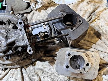 Motore Piaggio adattabile a vari ciclomotori Cilindro Malossi (credo 65cc) Come da foto, non bloccato, da restauro. Altri pezzi in dotazione come da foto