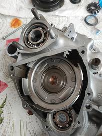 Vendo motore 130 polini come nuovo appena montato con cuscinetti nuovi e paraoli, travasi sabbiati, configurazione 130 polini in ghisa 7 travasi testa racing, frizione completa polini, collettore lamellare polini, pwk 24 polini, albero con spinotto saldato, campana cif 27/69, accensione fissa piaggio con volano ducati allegerito,marmitta polini banana. Il carter é pari al nuovo