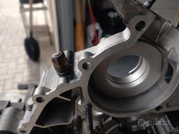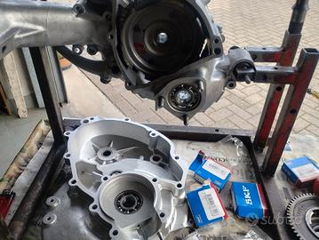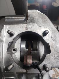 Vendo blocco motore 50 per vespa faro tondo R o special prima serie V5A2M tre marce n. serie 890xx cinque cifre, carter gemelli. Totalmente revisionato, cambiato tutti i cuscinetti(SKF), paraoli corteco, dischi frizione, e altre parti usurate. Ricondizionato lo statore con fili, condensatore bobina luce e bobina interna AT nuova. Gruppo termico originale piaggio pistone nuovo 38.4 è ancora da rodare. Il motore è completo, come da foto, di cuffia originale e copri volano . Il prezzo euro 750 é fatto dalle condizioni in cui viene venduto il motore, solo da montare, provato su banco . Spedisco al costo di 25 euro. NON COMPRESA LA MARMITTA E Il CARBURATORE