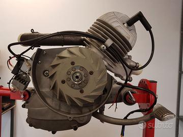 Motore completo vespa 50 special Quattrini/Zirri d.56 M1L x 51 realizzato su carter Piaggio con riporti di saldatura, barenati x albero Quattrini d.87 e raccordati al cilindro. Marmitta Quattrini M3XC, carburatore 34, accensione elettronica Vespatronic, campana polini evolution 24-72 denti diritti, frizione 4 dischi rinforzata Crimaz con carterino dedicato, crociera rinforzata. Il motore ha circa 500km, carter, cambio e marmitta erano usati, il resto era stato montato nuovo. Vendo perché non me la sento più di guidare una vespa così potente ed ho rimontato un blocco normale. Solo ritiro