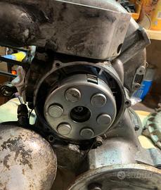 vendo motore vespa sprint prima serie 2 travasi del 1965. il motore presenta i carter gemelli. non e' stato mai aperto. richiede ovvia revisione. albero motore gira libero, impianto elettrico completo e funzionante. risultano assenti i seguenti pezzi : copri volano - coperchio selettore, marmitta, pistone e pedivella.