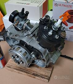 PREPARAZIONE - REVISIONE MOTORE AM6 Eseguo interventi completi su motori Minarelli AM6, garantendo standard qualitativi elevati attraverso l'uso di strumentazione di misura e attrezzatura specifica (estrattori, chiavi dinamometriche). Ogni motore viene assemblato senza sollecitazioni meccaniche improprie, rispettando le tolleranze costruttive. Principali servizi disponibili: - Revisione del Banco: Chiusura "zero ore" con sostituzione cuscinetti del cambio (SKF), sostituzione cuscinetti albero motore (SKF C3-C4), paraoli in Viton e guarnizioni di alta qualità. - Raccordatura dei travasi al cilindro e ottimizzazione del condotto di aspirazione -gruppi termici e maxikit: Installazione gruppi termici o kit con calcolo dello squish (micrometrico) tramite filo di stagno e selezione guarnizioni di base per ottimizzare il rapporto di compressione. - installazione frizioni rinforzate con taratura del carico molle con possibilità di montare anche frizioni a denti dritti. Elettronica: Installazione e messa in fase di accensioni a rotore interno (MVT, Selettra, PVL) con anticipo calcolato in base al tipo di configurazione. -rimozione miscelatore automatico per elaborazioni (consiglio di rimuoverlo anche su elaborazioni base). ho anche un motore am6 2ª serie, blocco vergine, posso prepararlo in base alle vostre esigenze Ogni blocco viene riconsegnato corredato da una scheda tecnica con i valori di serraggio-squish, con ricevute e prove ďaquisto di tutte le componenti installate, e con foto e video di come sono state eseguite le lavorazioni. Per ogni dubbio non esitate a contattarmi