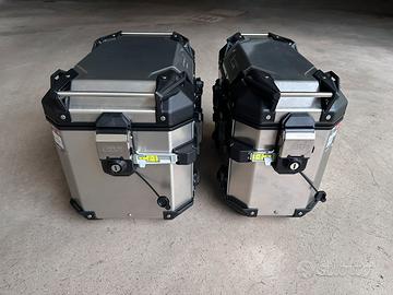 Vendo per inutilizzo coppia di valigie laterali Givi Trekker Outback EVO in alluminio Valigia Laterale sinistra da 48 litri Litri e destra da 37 litri, un anno di vita. Serratura con chiave unificata.