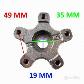 (R.12197) Vendo mozzetto del disco freno ruota posteriore usato per Piaggio NRG Extreme 50 cc dal 1999 - NRG Purejet 50 cc dal 2002 - NRG Power 50 cc dal 2004 - Mc3 50 cc dal 2001 - RST Mc2 50 cc dal 1996 - Gilera Stalker - Gilera Runner , con codice Piaggio 56111R marchiato Grimeca B3 , con interasse dei fori di fissaggio da 49 mm , diametro maggiore del foro centrale da 35 mm e diametrointerno del foro da 19 mm , per misure e applicazioni vedere foto