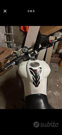 Specchietti sportivi,faro led,manicotti logati MT 03,leve freno e frizione sempre logati MT 03,portatarga sportivo,stop bianco,sterzo accossato nero,paraleve effetto carbonio,la moto è stata tagliandata,, la moto c'è da fare solo il serbatoio prezzo poco trattabile astenersi persone che vogliono perdere tempo grazie