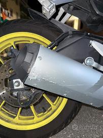la moto presenta come nella foto un piccolo graffio da parcheggio sulla marmitta presenta segni di usura sulle leve ma per il resto funziona alla perfezione usata sempre per casa-lavoro e attualmente tenuta in box.