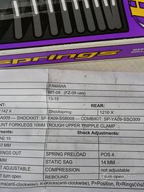 Per MT09 fino al 2017 vendo molle anteriori è mono posteriore completo kit hiperpro progressive usato tutto pochissimo!!!migliora sensibilmente la ciclistica!difetto delle MT09 di quegli anni!