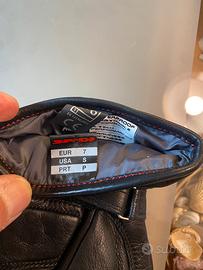 N2 paia di Guanti in vera pelle originali moto guzzi invernali mai usati ( due paglia ) Questi guanti in pelle hanno imbottitura Primaloft® e sono certificati EN13594. Realizzato in pelle di pecora e capra, con uno spessore di 0,6/0,8 mm. Tessuto Tenax Flex in nylon 6.6 ad alta resistenza, massima resistenza all'abrasione - Fodera termica da 150 g - H2Out impermeabile, traspirante e antivento - Polsino elastico. Protezione nocche in poliuretano a densità variabile per l'assorbimento degli urti - Logo Moto Guzzi sul polso.