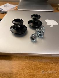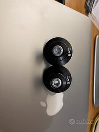 NOTTOLINI IN ALLUMINIO M8X1,25 - per SUZUKI, HONDA. DUCATI, TRIUMPH originali Lv8 ELEVATE. Colore: anodizzato nero Materiale: alluminio Codice articolo produttore: Cod. Art. E201/08125N Usati ma in ottime condizioni. Piccoli segni delle forchette del cavalletto come da normale utilizzo (montateli col logo Lv8 in alto come facevo io e guardando la moto non si vedrà assolutamente nulla perché le forchette toccheranno i nottolini da sotto!!!)😉 Viti in acciaio. Da utilizzare con cavalletto posteriore solleva moto. Comprati sul sito ufficiale e pagati 30,50€ + 10€ di spedizione. Consegna a mano su Roma oppure posso spedire tramite TuttoSubito. 🚛 👍🏻