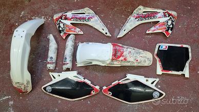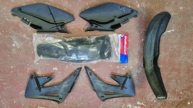 Vendo in blocco o separatamente tutte le plastiche visibili in foto... parafanghi, fianchetti, tabelle portanumero, paramani, paracolpi e lana di vetro per silenziatore pro-circuit Shorty.