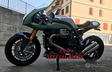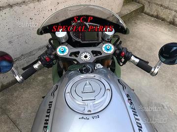 PRESENTIAMO AVANTRENO COMPLETO PER GUZZI GRISO CON FORCELLE OHLINS DA 56mm, PIASTRE DI STERZO RICAVATE DAL PIENO SPECIALI CON MANUBRI RICAVATI DAL PIENO, PIEDINI RADIALI, PINZE BREMBO RADIALI M4 E CERCHIO MARCHESINI CON DISCHI BREMBO.