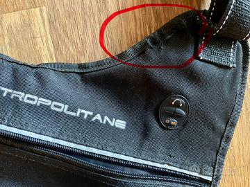 OJ Atmosfere Metropolitane borsa tracolla moto per motociclista Lievissima scucitura come da cerchio rosso in foto n.6.
