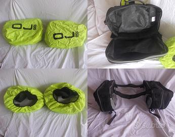 In caso di pioggia, grazie alla cover impermeabile inclusa, il contenuto delle borse rimane all'asciutto.