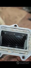Ex pacco lamellare ktm exc 1998 5 fori(quindi tutti i carter fino al 2016 5 fori)rivisto completamente e trasformato da tripetalo a monopetalo con lamella da 0.45mm e stopper da 0.55mm raccordato e con il guidaflussi,lucidato a specchio lungo i bordi e sfruttabile anche su 250.